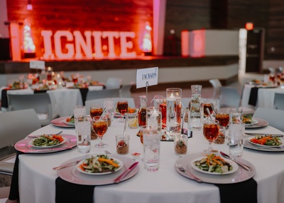 - "Reception Sponsor" signage with logo on tables/bar(s) in reception area or room
